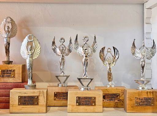 Jenny created her first Victory Girl as a project in her art therapy. Her assignment was to create a strong, courageous woman rising from her imper...