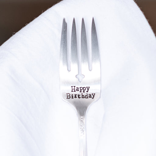 This Happy Birthday fork is the perfect gift for someone's birthday! Especially if they like their birthday deserts :) We create them by hand-stamp...