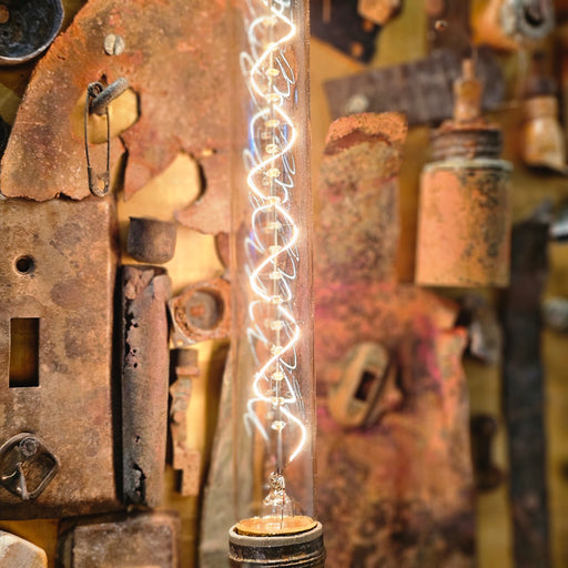 This was a fun piece to make! I wrapped the back board in vintage brass shim stock then layered in all kinds of metals as well as ceramic electrica...