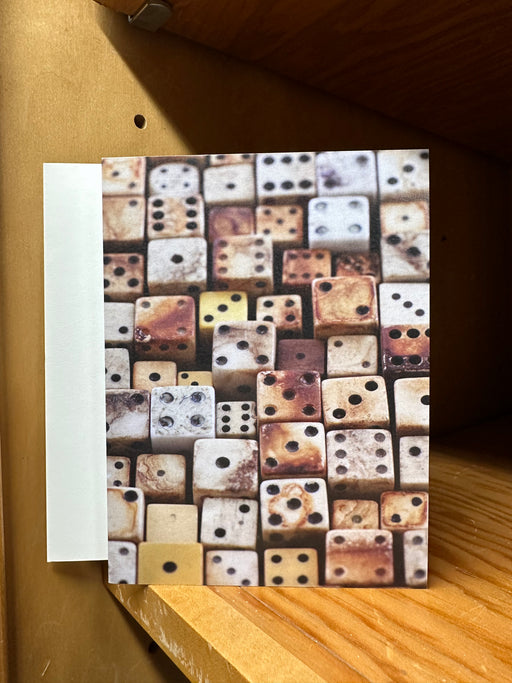 This is a detail image of antique dice that were found in a bag, stuffed in a house wall.Cards are blank inside and come with a white envelope in a...