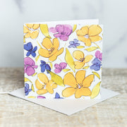Purple Yellow & Blue Flowers 3x3 Gift Card by M. E. James