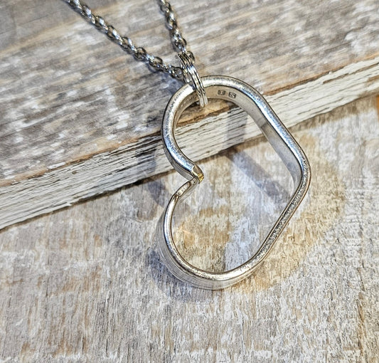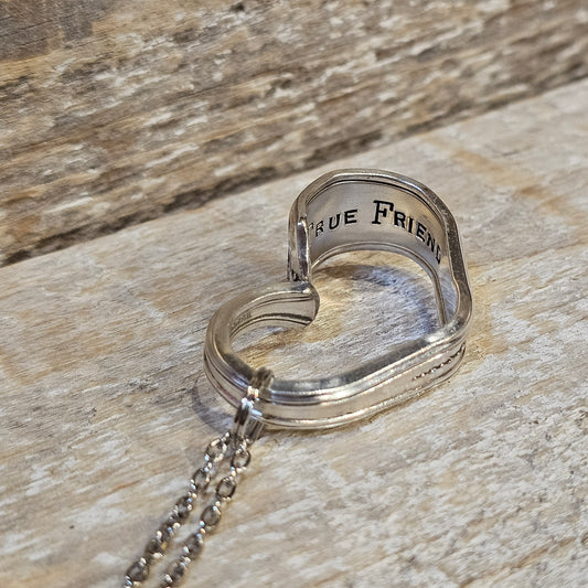 Hand Bent Heart Necklace - with Custom Text inside - Silver Plate Cutlery