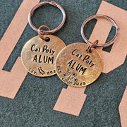Melissa hand-stamps brass discs for you to enjoy as a key ring OR necklace! This title is "Cal Poly ALUM". We'll add whatever year is applicable, just leave it in the 'Notes to seller' at checkout.