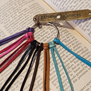 Melissa hand stamps a 6" long, by 1" wide aluminum strips with YOUR custom word, phrase or date (up to 50 characters). It's sure to please the reader in your life! Each one is tied at the top with a bit of leather (see choices above).  Item arrives packaged in cellophane, ready to gift.