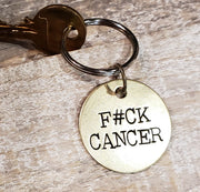 Hand stamped by Melissa on 1.5" diameter, 18 gauge brass. Comes with a 30" nickel-plated steel ball chain and a key ring.