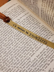I'D RATHER BE READING Hand Stamped Brass Book Mark with Leather