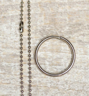 "Not All Who Wander Are Lost" is stamped in the center of this 1.5" diameter brass disc, then Melissa adds a bicycle and small heart floating behind as if on a string. Item comes with split key ring and 30" ball chain necklace. Each piece is created one at a time making it as unique as the person receiving it!