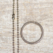 Perfect as a key ring, necklace or zipper pull, this 16 gauge brass disc is 2" in diameter and comes with both a 30” nickel plated steel ball chain and split key ring, enclosed in a clear plastic sleeve.Each piece is hand produced and there may be slight color variations from the photo shown.