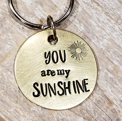 Melissa hand-stamps brass discs for you to enjoy as a key ring OR necklace! This title is "You are my sunshine". The 16 gauge disc is 1.5" in diame...