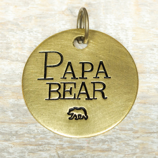 Melissa hand-stamps brass discs for you to enjoy as a key ring OR necklace! This title is "Papa Bear". The 16 gauge disc is 1.5" in diameter. Penny...