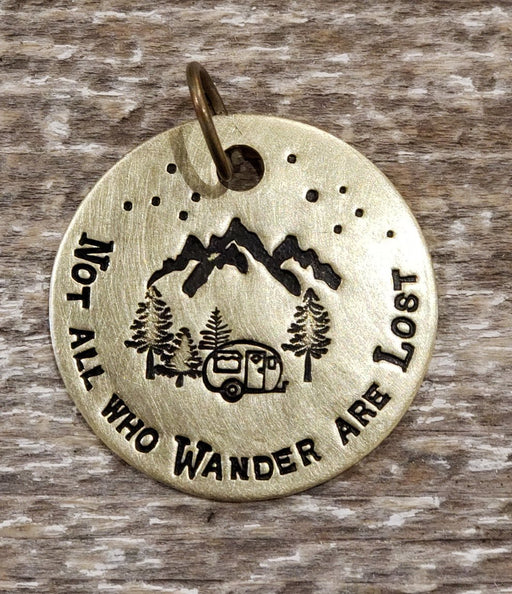 View full detailsNot All Who Wander Are Lost - Mountains, Trees & Camper Hand Stamped Brass