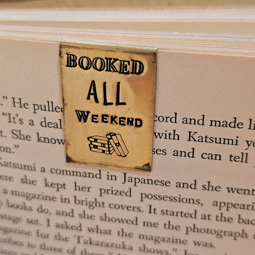 BOOKED ALL WEEKEND Hand Stamped Brass Bookmark
