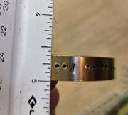 Melissa has stamped the message "I love you" in Morse code on a 3/8" wide brass cuff bracelet. One size fits most.