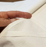 The towel is made of 100% cotton from Turkey, then printed in the USA with Melissa's artwork. They measure approximately 26"x 28" and also features a loop for hanging on a hook.