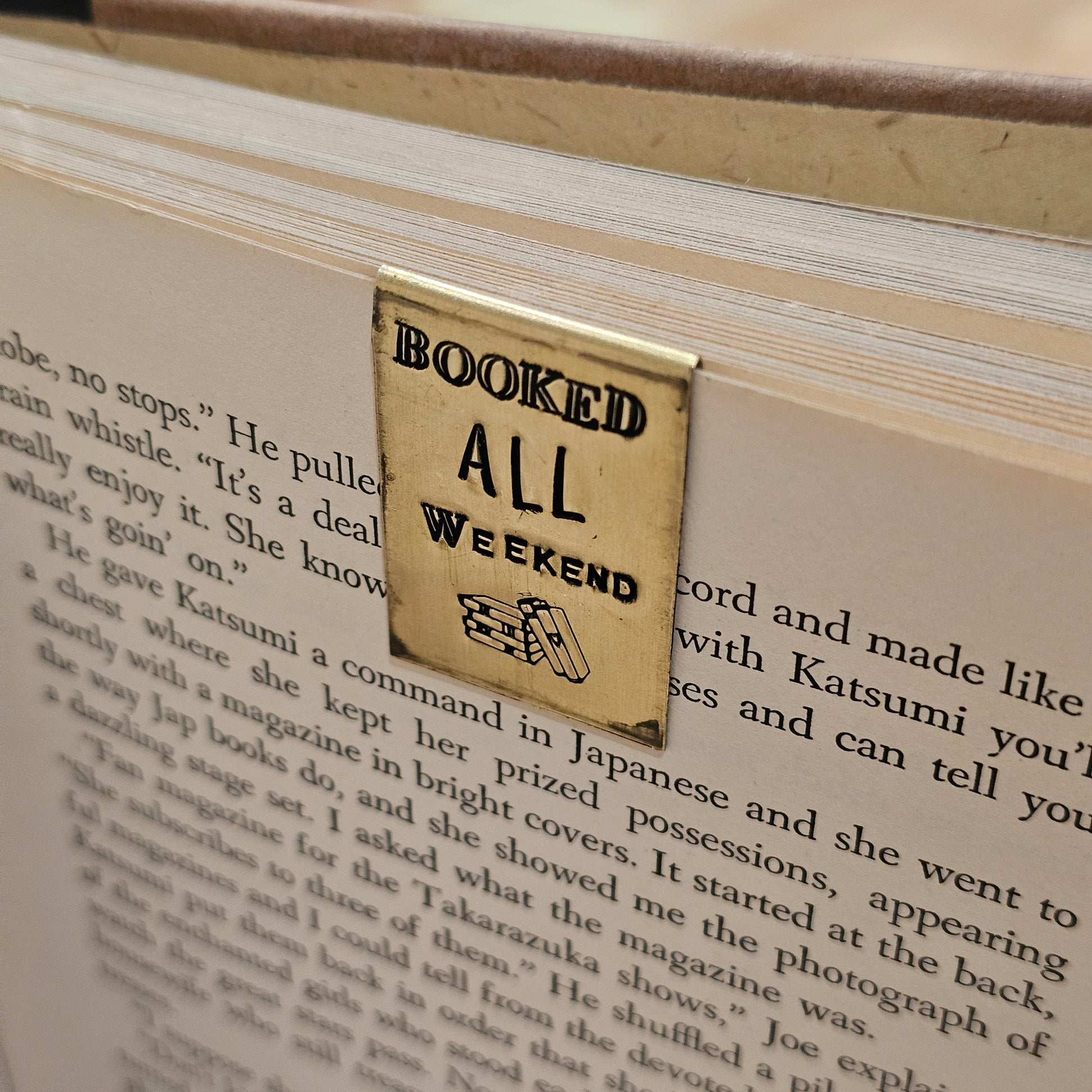 BOOKED ALL WEEKEND Hand Stamped Brass Bookmark