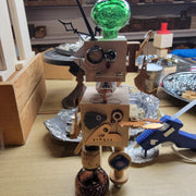 Always a crowd favorite, JunkBots are unique “robots” created using found and vintage objects. aka junk. Items such as clock gears, bulbs, star washers, nuts, screws, bolts,