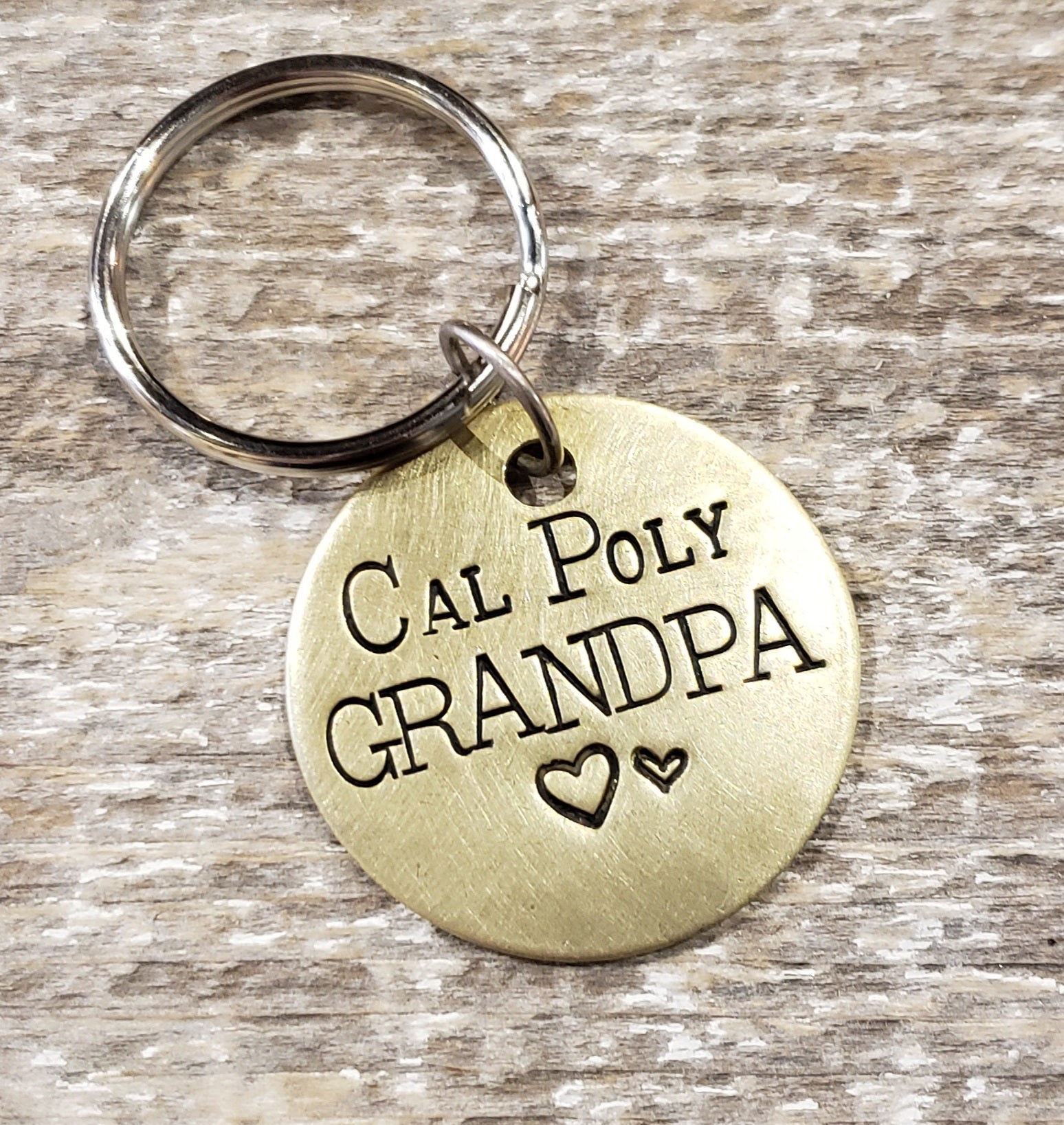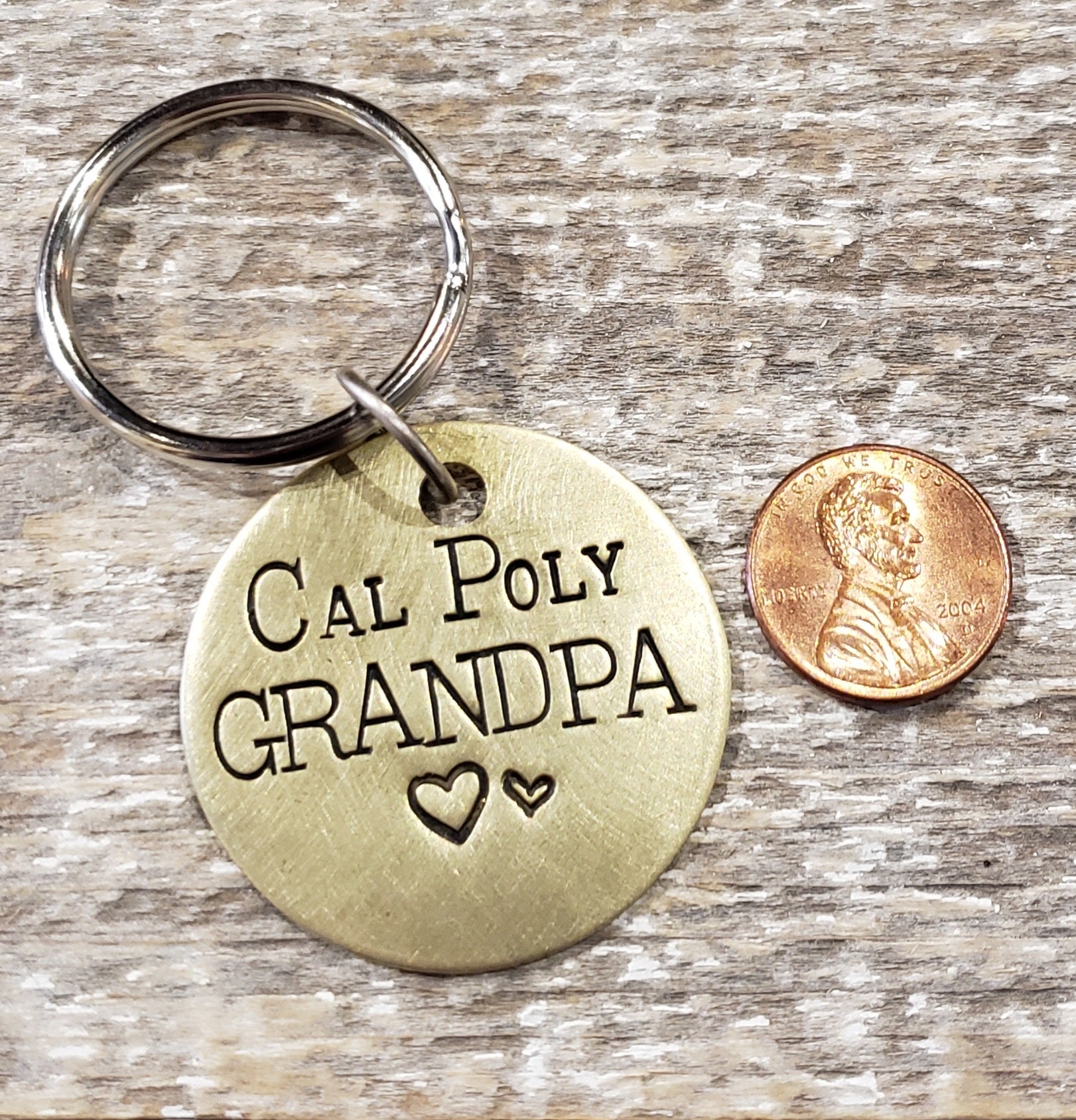 Hand stamped on 1.5" diameter brass. Comes with a 30" nickel-plated steel ball chain and a key ring.