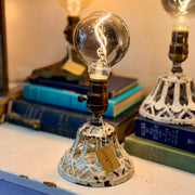 These cast iron turn-of-the-century lamp bases came from Maine. After cleaning and poly coating them, Jenny made simple little lamps, perfect to use as an accent lamp, beside lamp, desk lap or in a book case. Elizabeth comes with a 40w, dimmable, smoky glass, 5.4" x 3.7" LED bulb. Looking for a set? Elizabeth has a twin sister Angeline!