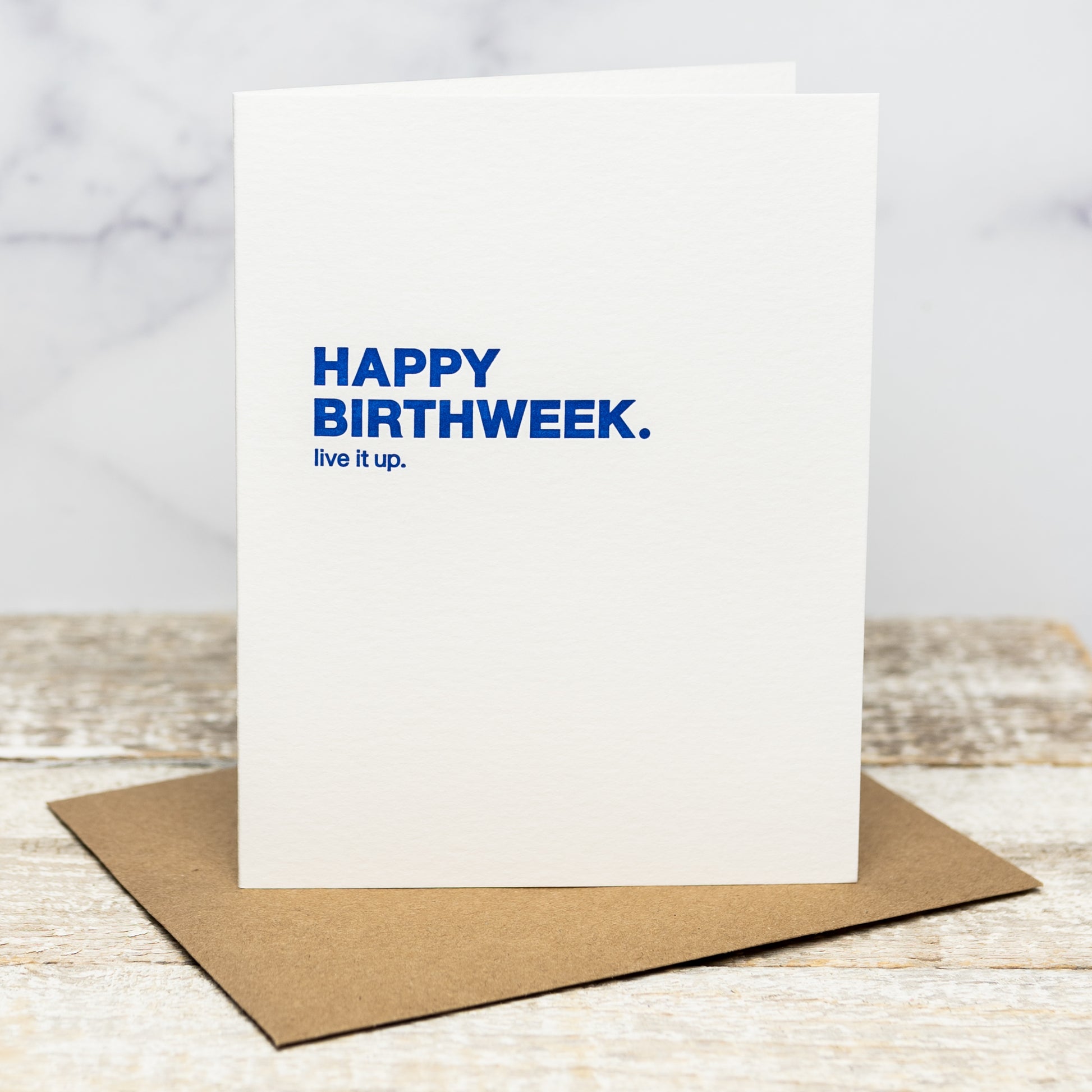 Sapling Press makes some great, funny greeting cards that we think you'll enjoy! This one reads "Happy Birthweek. Live it up."