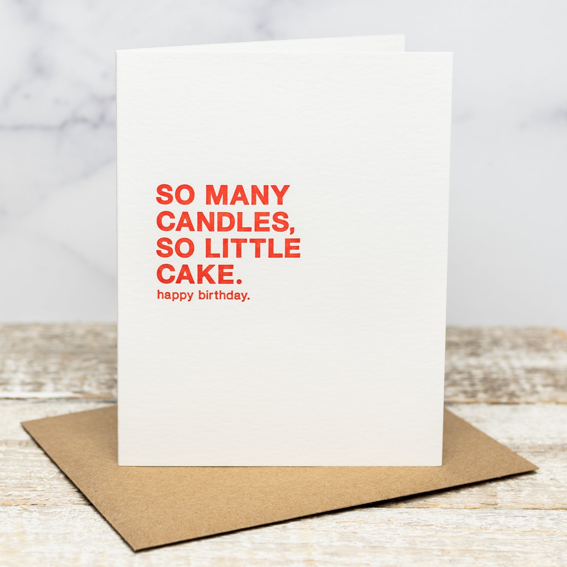 Sapling Press makes some great, funny greeting cards that we think you'll enjoy! This one reads "So many candles, so little cake."